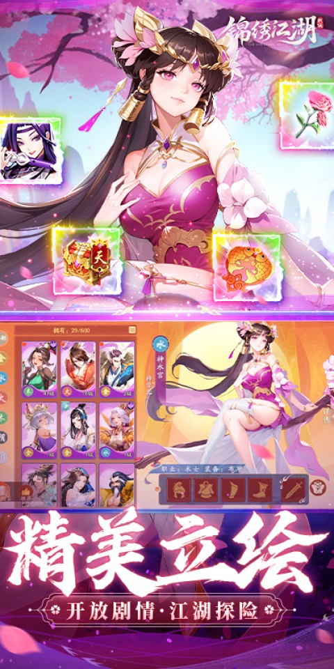 《锦绣江湖(永久0.05折)》是一款以“人形兵器”为题材的武侠卡牌养成手游。游戏打造了一个超精彩的武侠世界,这里有着开放式的江湖大世界,上百个经典武林门派,以及大量以武器为原型的高颜值侠客角色!我们可以自由收集自己喜欢的高颜值侠客,组件属于自己的江湖团队,带领着他们一起展开精彩的冒险!光速游给大家分享锦绣江湖(永久0.05折)下载,游戏里面只要充值都可以享受0.05折超低折扣,有兴趣的朋友赶紧来下载吧!