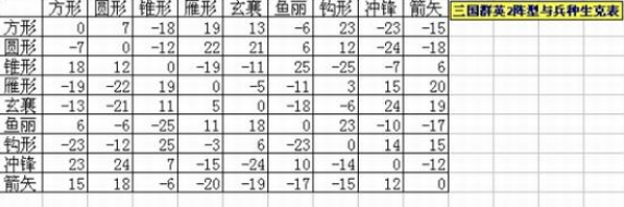 三国群英传2兵种相克及阵型相克一览表