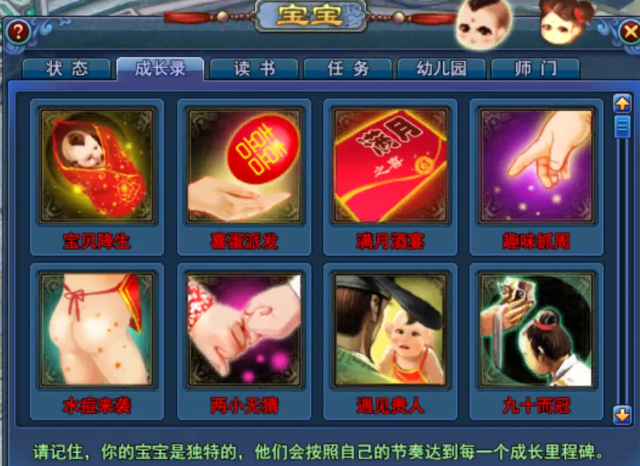 兑换求子签携带准生证前往杭州求子龛(坐标193,229),用善恶点兑换“求子签”,并在三丈外将其投入佛龛,妻子即可怀孕。