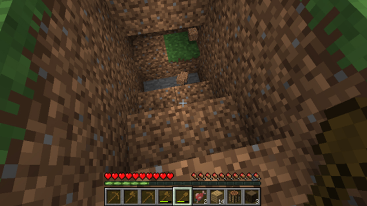 快速获取资源:优先砍伐橡树(高概率掉落苹果),制作木镐→石镐→铁镐,升级您的工具。木制工具仅作过渡,获得石头后立即丢弃。采集羊毛制作床(3块同色羊毛),找不到羊时可击杀蜘蛛获取线合成羊毛,或直接挖掘砂砾/泥土建造临时地下庇护所。