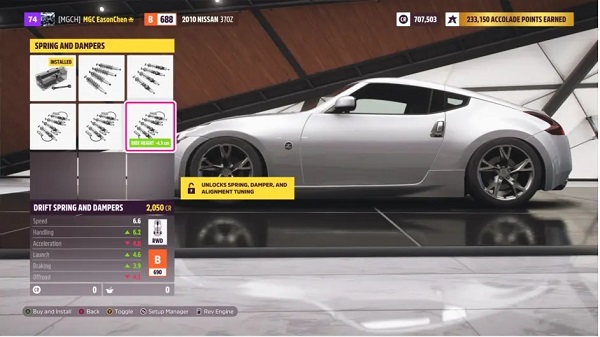 首先需要安装的就是漂移悬挂,这款悬挂可以增加转向角度,使车辆在漂移的时候更轻松的做出更大的角度而不失误。