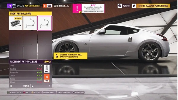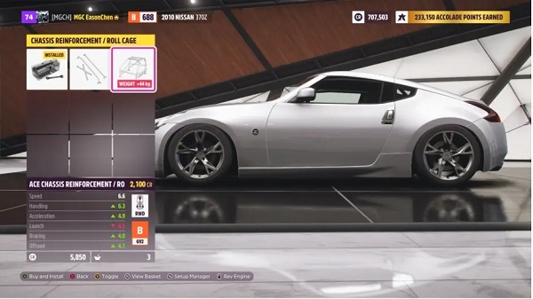 然后是防倾杆,这里我们选择赛用的防倾杆,防倾杆的作用是可以使车辆过滤掉不必要的侧向倾斜,以免在进行漂移这种很大侧向力度的动作时会对车辆的平衡进行干扰。
