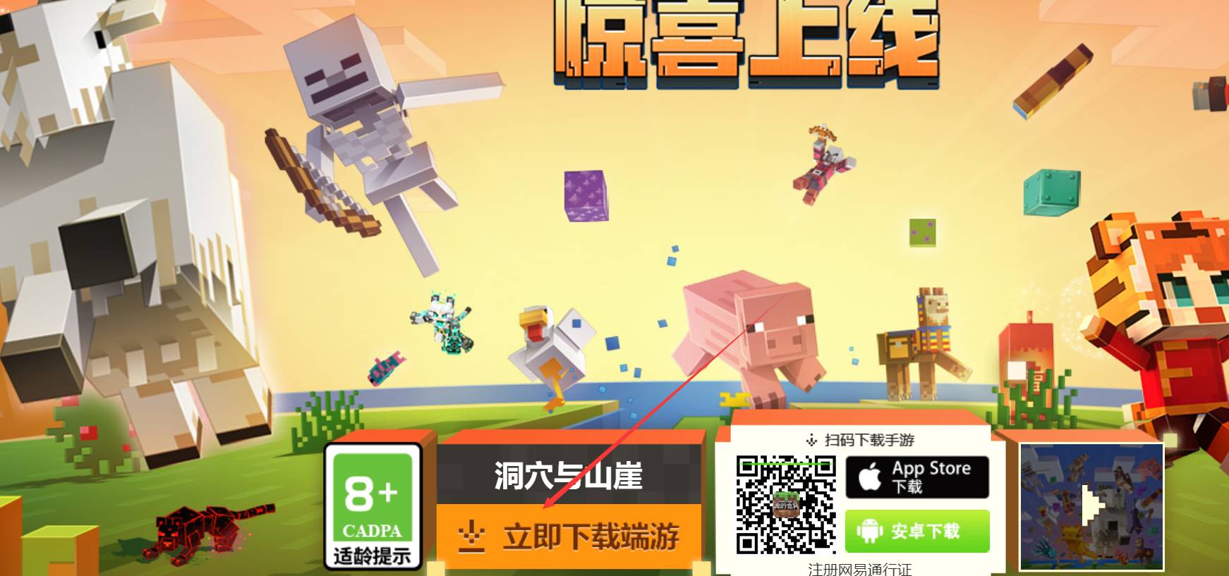 通过手机浏览器进入 网易我的世界官网(中国区)或 Minecraft 官网(国际区)也可以在手机应用商店下载