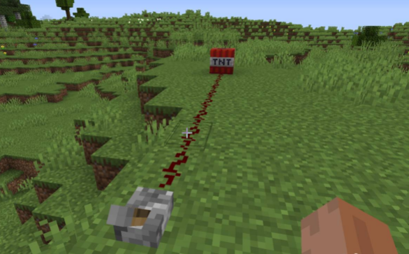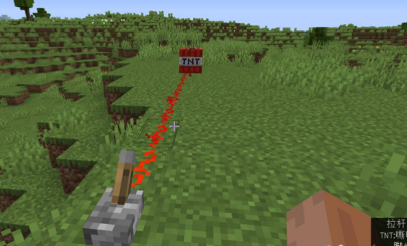 2、在摆放TNT用红石将拉杆连接起来之后,玩家对着拉杆点击右键,即可激活TNT。