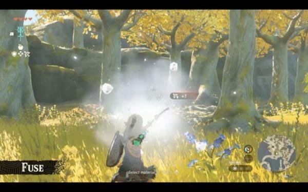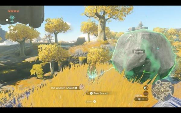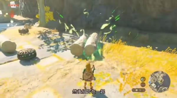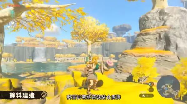 这个技能也是通过L键发动,按下L键后,林克的手臂与身边的可合成物品之间会有能量链接,此时可以看到可以按下ZL或Y键选择盾牌或者树枝。