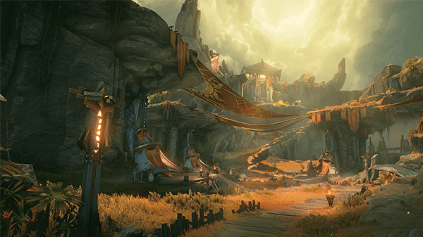 临近界墙要塞的山麓区域,动物们因丰茂的牧草在此成群结对地悠然生活,遗迹之间分散的村落也为此处增添了人的生机。即使在此处惬意的生活,小型竞技场仍是不可或缺的存在。