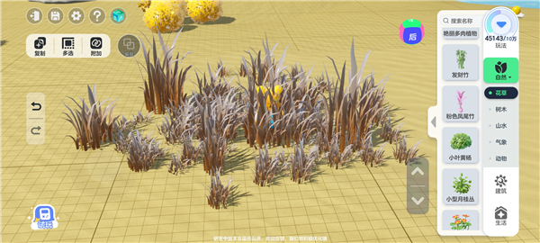 光有一颗草可不行,真正的老六都是躲到草丛里的,我们还需要更多的草来容身,这样我就开始复制之旅了!复制可以选择复制数量,根据方向平移和垂直都可以复制。