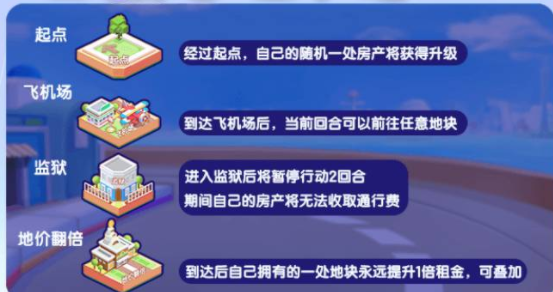 2、游戏主要靠掷骰子前进,玩家在到达的位置会有事件或者房产,如果是事件则玩家要按说明严格执行。