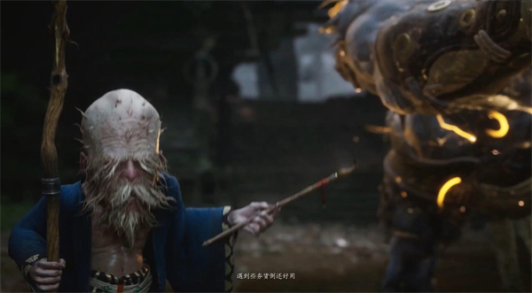 这场boss战在牯护院血条下到一半时,会立刻开始剧情,是土地爷来教我们第一个法术:定身术,这个招式相当好用,能强行打断boss或者小怪动作,还能给予对方增伤,是我们贪输出的好技能。