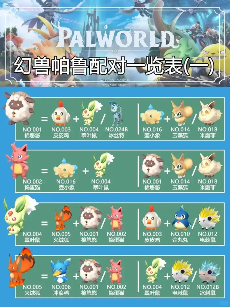 幻兽帕鲁配种一览表