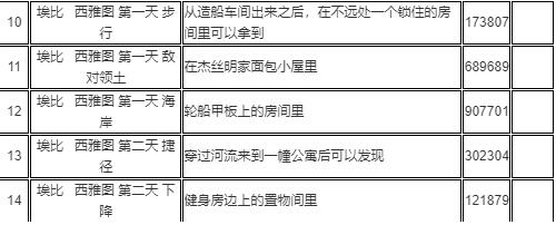 10、埃比-西雅图-第一天-步行:从造船车间出来之后,在不远处一个锁住的房间里可以拿到密码箱,密码:173807。