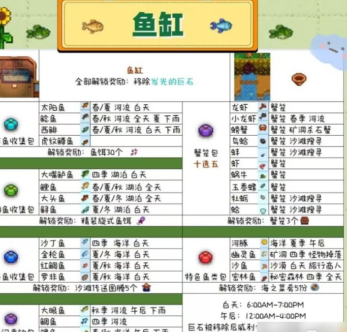 3、鱼缸的蟹笼收集包:可以解锁布告栏