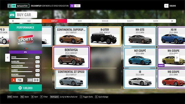 此外还有Forza版汽车,只能在游戏商店购买,车辆都有额外的奖励技能。