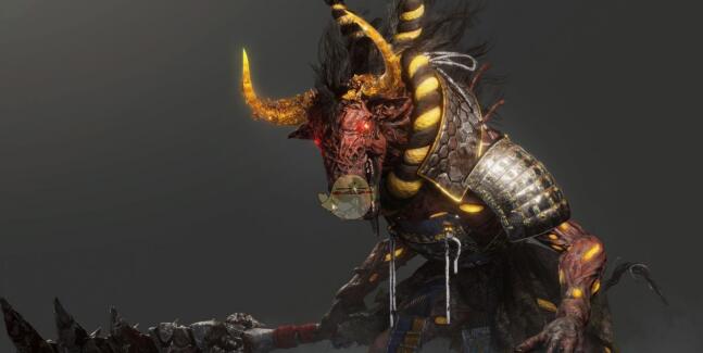 仁王2牛头鬼是首次登场的精英级妖怪,原型源自佛教经典中的地狱狱卒阿傍,其标志性特征为牛首人身,战斗中会通过犄角挑起对手实施致命摔击,犄角既是核心攻击手段也是弱点部位。犄角部位耐久度较低,精准打击可触发部位破坏并造成气绝状态,作为游戏初期流程的主要教学型敌人之一,牛头鬼在主线任务樱祸村和支线任务地狱雅士中均承担关键战斗节点定位,帮助玩家掌握仁王2核心的妖反机制与部位破坏系统。