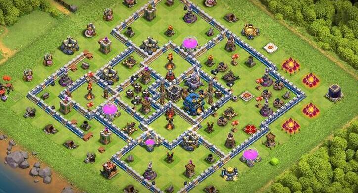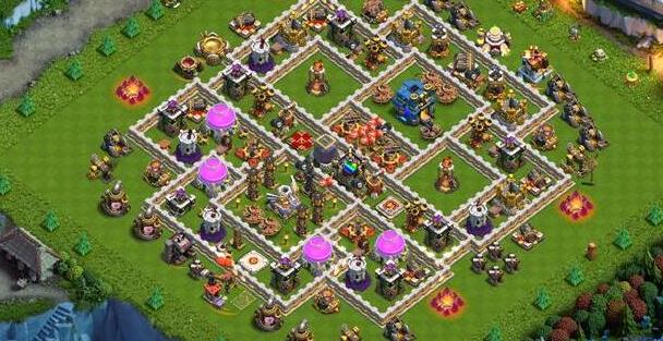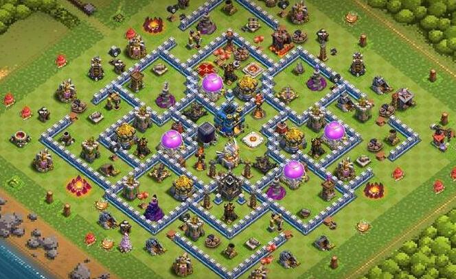 部落冲突12本阶段防雷龙阵型是通过建筑布局削弱雷龙的连锁攻击能力,同时集中防御资源保护关键建筑,提升对空防御体系的整体效率。雷龙的强势在于其技能可同时攻击5个目标,但触发连锁攻击的条件是目标建筑间距不超过1格。防雷龙阵型通过扩大建筑间距外围建筑间隔2-3格,迫使雷龙无法连续电击多个建筑,从而降低其清边效率。