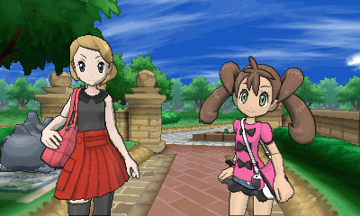 出门后两位劲敌出现,黄头发的是Serena,棕发的是Shauna