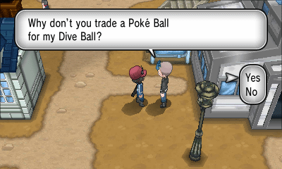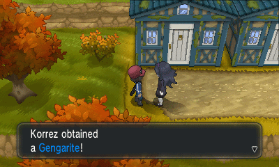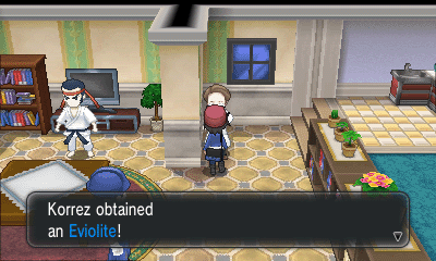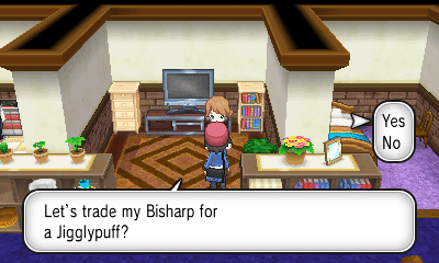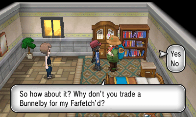 PC上排右侧的房子内有人给你一个超级球;左侧的房子内有人用大葱鸭跟你交换Bunnelby