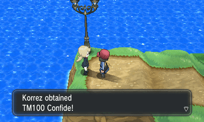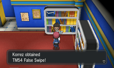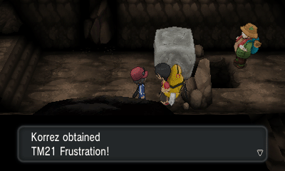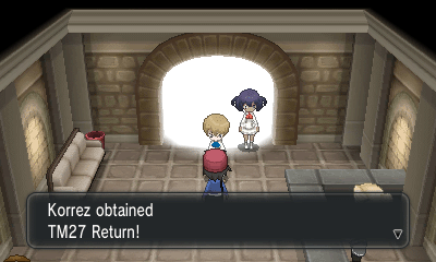 走到尽头两位小朋友Sina和Dexio会向你介绍妖精属性并给你TM27(报恩)
