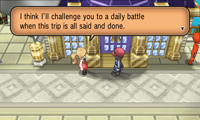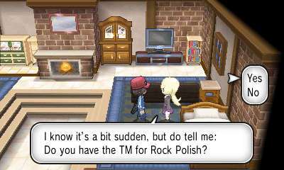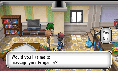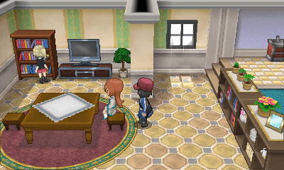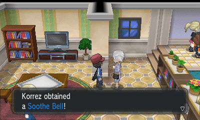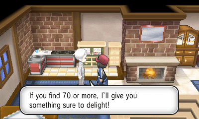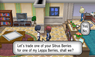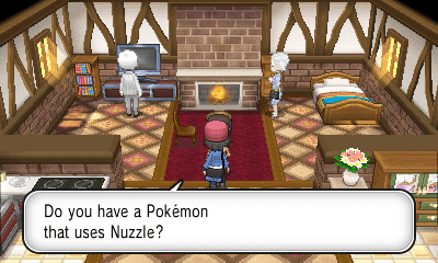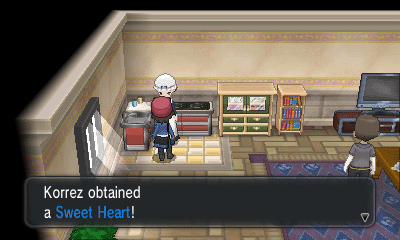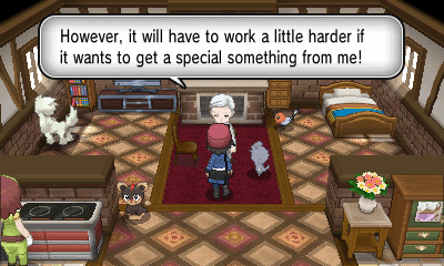 旅馆上方的女孩会给你树果汁;房屋内的男子会让你给他看一只特定属性的精灵(每日事件),然后获得奖励;而房屋坐上角的女子会给你心形甜品