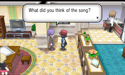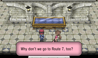 往城市左边走来到7号道路(Riviére Walk),遇到挡路的卡比兽,需要到Parfum Palace拿精灵笛(久违的剧情……
