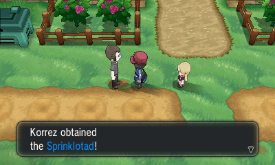 7号路下面某果园主因为腰的问题会叫你接手果园,然后给你5个橙果、5个桃果和一个Sprinklotad(莲叶童子水壶),并教你如何种植树果