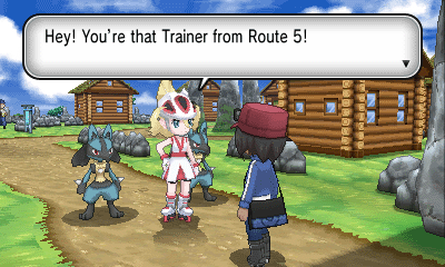 来到5号道路(Versant Road),一只路卡利欧围着你转,然后馆主出现,叫你去挑战她的道馆
