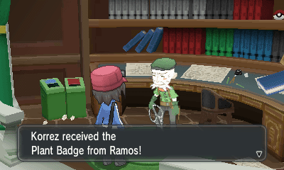 第一个道馆是虫系道馆,跟着水滴来走就可以走到馆主前面了,打败她后获得TM83(Infestation)