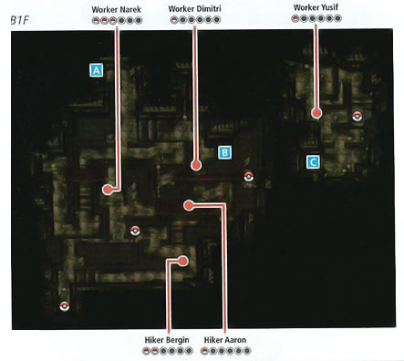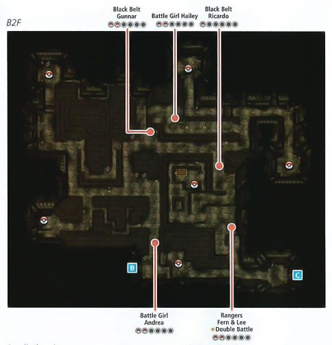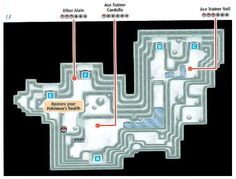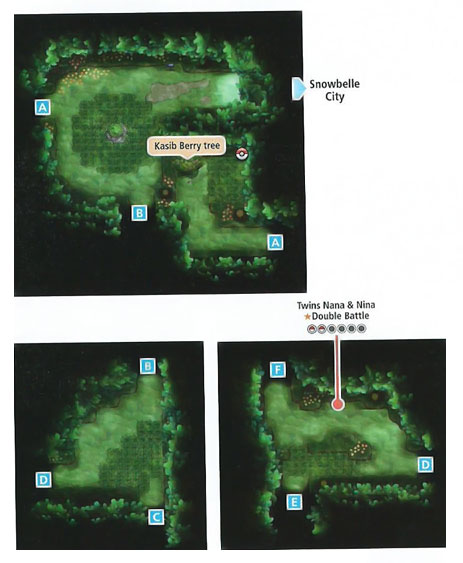 虽然地图大,分为俩洞内1/2和洞外1/2,不过路径没20号路那么坑,所以这里就不详细列出道具获得的途径了