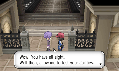 终于来到冠军路门口,守门人确认你的徽章数量后会挑战你