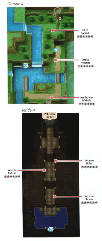 通过1号道路(Vaniville Pathway)后来到Aquacorde Town,4位劲敌会叫你过去