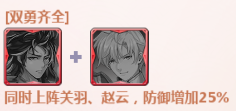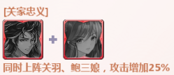 同时上阵关羽、鲍三娘,攻击增加25%。