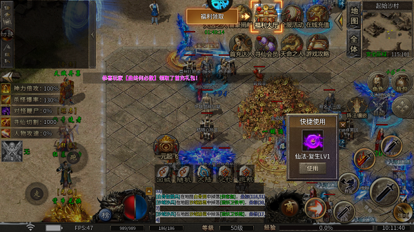 3.宠物系统自带切割伤害与招财BUFF,打怪同时赚灵符和充值点。