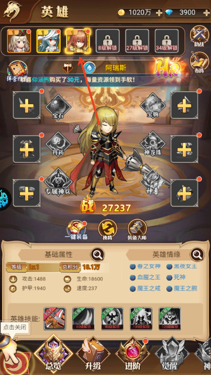 4、之后将召唤的英雄上阵,从而提升战斗力;