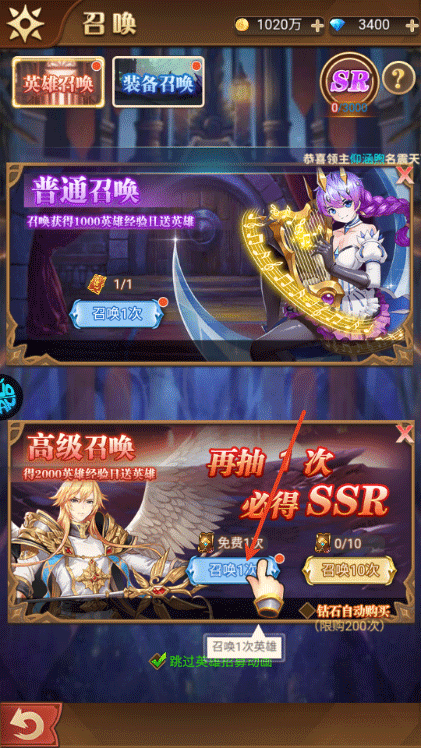 3、之后你可以免费召唤英雄;