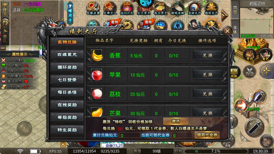 5.活跃商城机制,击杀百怪得摇奖次数,积分兑飞剑、装扮。