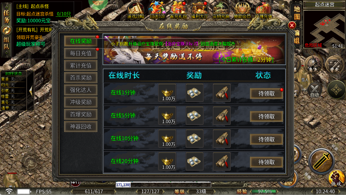 3、在线奖励