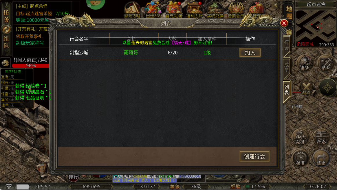 加入行会,借助行会资源/组队刷怪,加快发育效率。