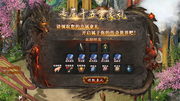 4、领取你的专属十五重好礼,开启属于你的传奇世界;