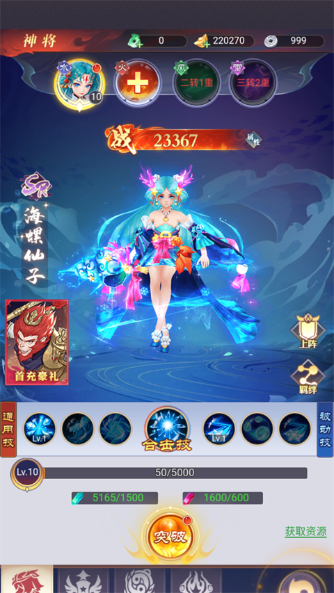 5.神将系统丰富,水火风雷四大属性自由搭配,羁绊激活战力飙升。