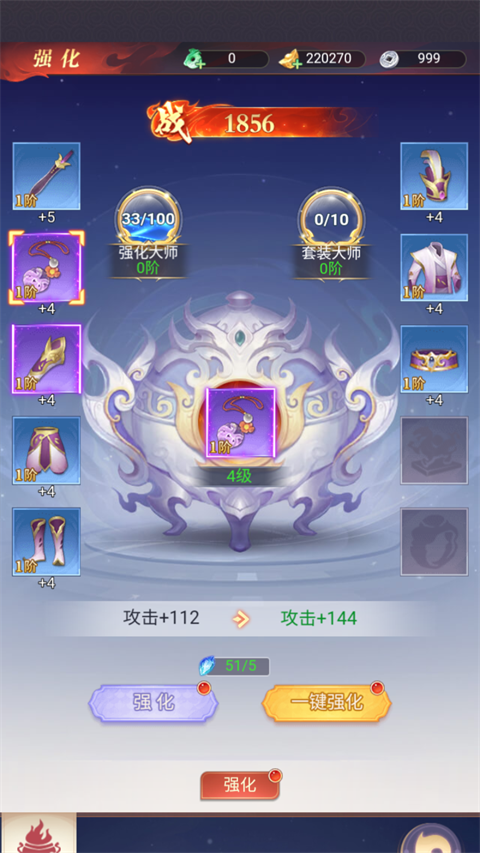 提升神将等级,解锁技能。神将之间更有独特的羁绊,每激活相应神将之间的羁绊可以提升战斗力,提高神将属性值。