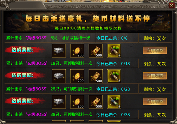 6.每日悬赏任务+成就系统,奖励丰厚成长迅速。