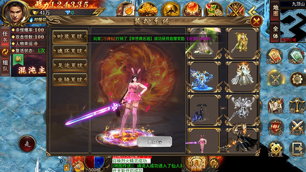 神装满地掉:所有装备、货币均可通过打怪爆出,包括顶级神器、屠龙宝刀等,真正做到“打到一件高级装备直接起飞”
