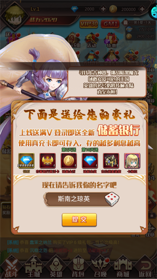 领取上线满V等豪礼,开启战力提升基础福利