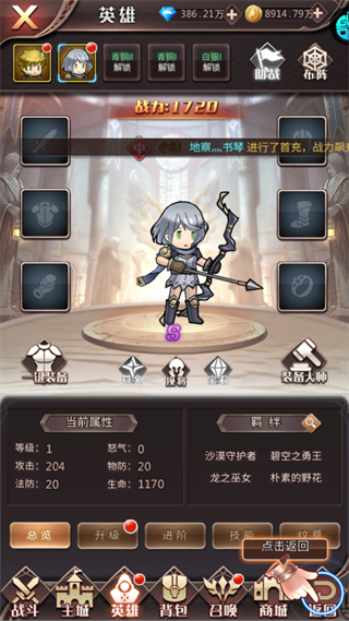进阶、升级英雄,强化属性配置以提升整体战力