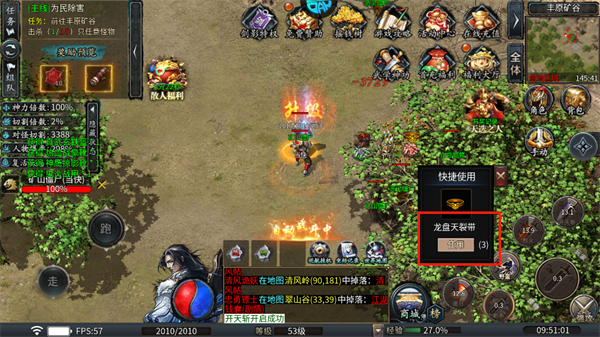 3、接“丰原矿谷”击杀任务(15怪),配合“烈火精灵”召唤技能,快速清怪攒经验。