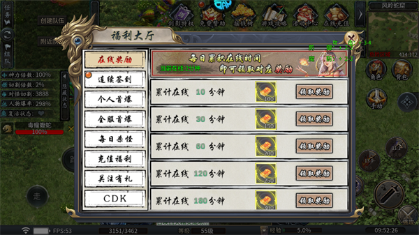 7、领取累计在线时间必领奖励(首爆/杀怪福利),优先兑换“神力倍数”增益,刷图更轻松!