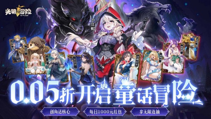 《光明冒险》是一款不烧脑、福利高、画风超萌的“轻”养成RPG手游。游戏主打异世界冒险,角色进化路线多样,无论你是想推图闯关还是休闲集卡,都能玩得很舒服。如果你想找个画风治愈、点点屏幕就能变强、不用氪金也能当大佬的解压游戏,那么这款游戏一定会让你满意的!光速游给大家分享光明冒险(0.05折小红帽送代金)下载,游戏全场充值低至0.05折,上线就能免费领到强力的暗黑小红帽等稀有光暗英雄,直接跳过前期“刮痧”的尴尬!有兴趣的朋友们赶紧来下载吧!