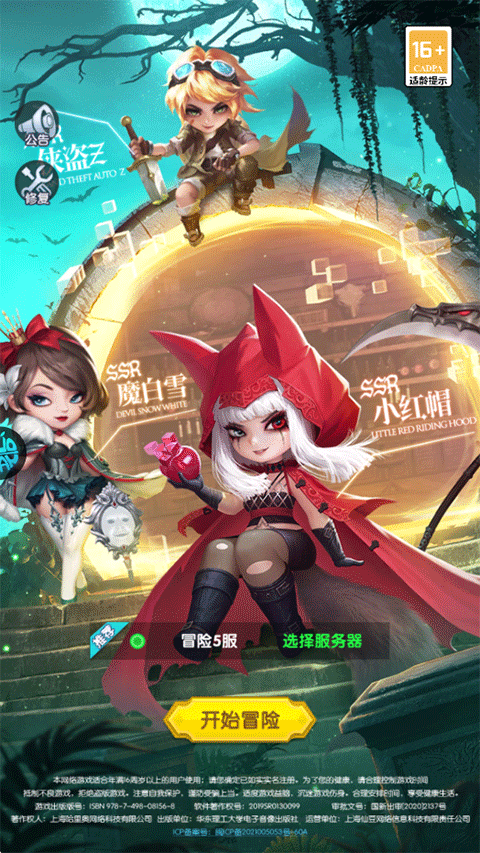 1、打开光明冒险手游,登录账号后选择区服,点击开始冒险进入游戏;
