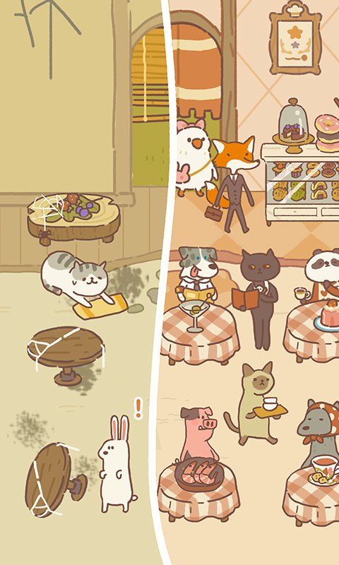 5、 你可以雇佣大厨、跑腿、收银员,清一色全是性格各异的猫咪员工。