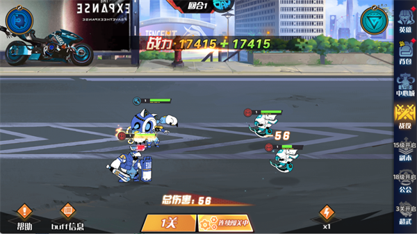 推图实战技巧:战斗中关注战力叠加与伤害输出,前期无需手动操作,利用自动战斗推进关卡;若遇敌方压力大,可通过左侧【buff信息】查看增益效果,合理利用buff提升伤害。